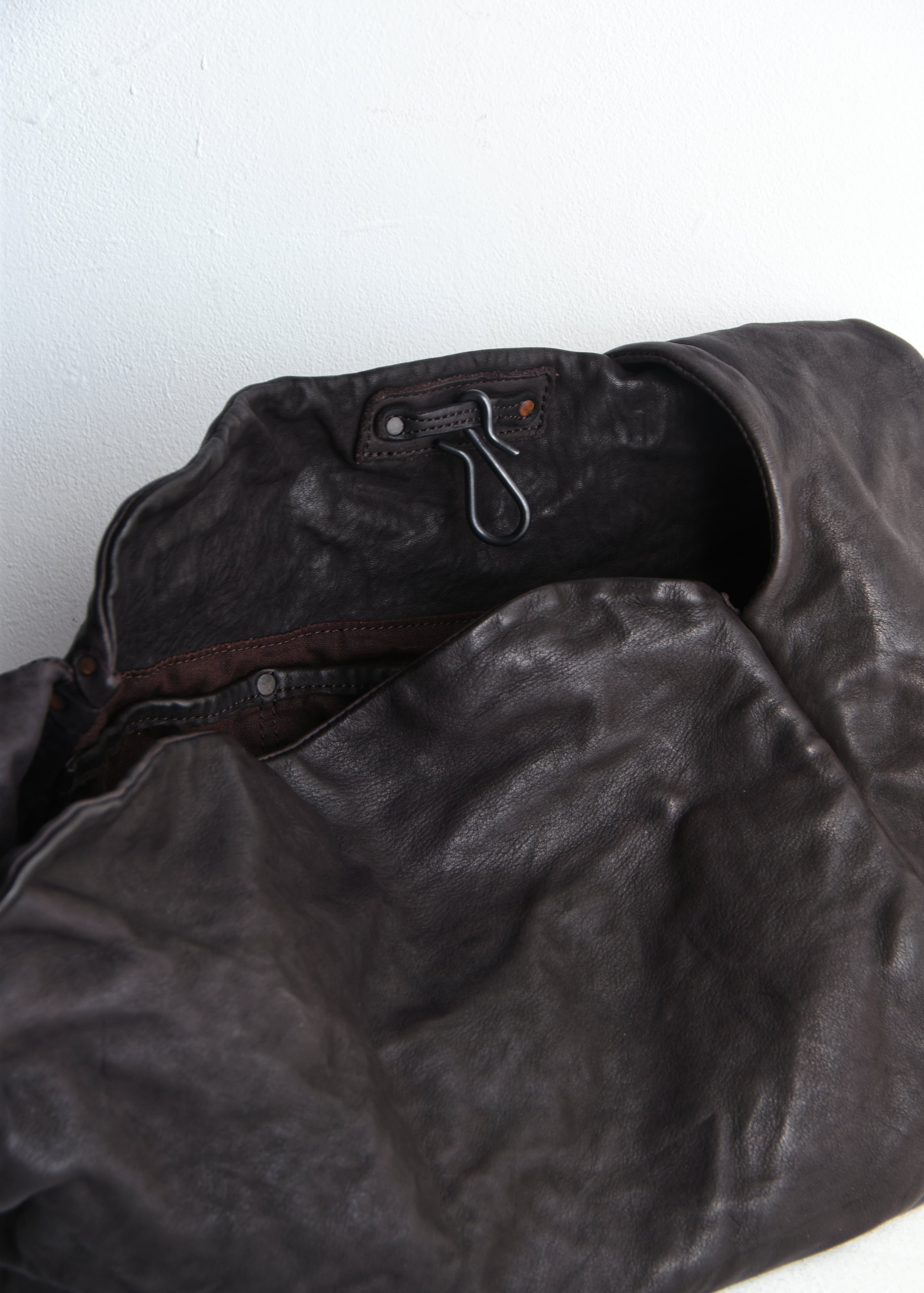植物タンニン鞣しの革を顔料を使わずに染料とオイルのみで仕上げる事で、より革本来の表情を楽しむことが出来ます。ですがその為、雨や汗等の水分や摩擦により、色落ち、移染する事がありますので、お取り扱いには下記の点にご注意をお願い致します。