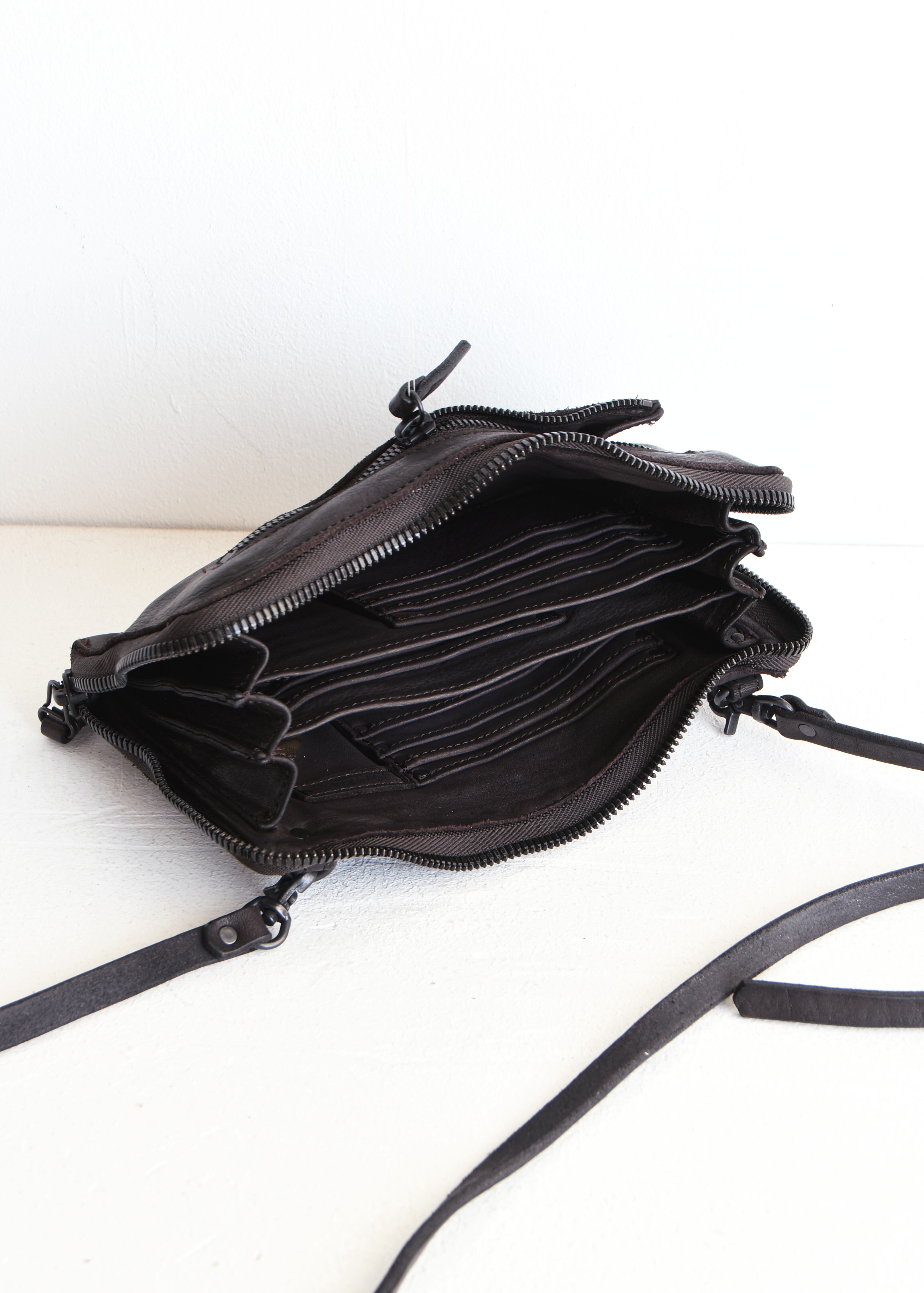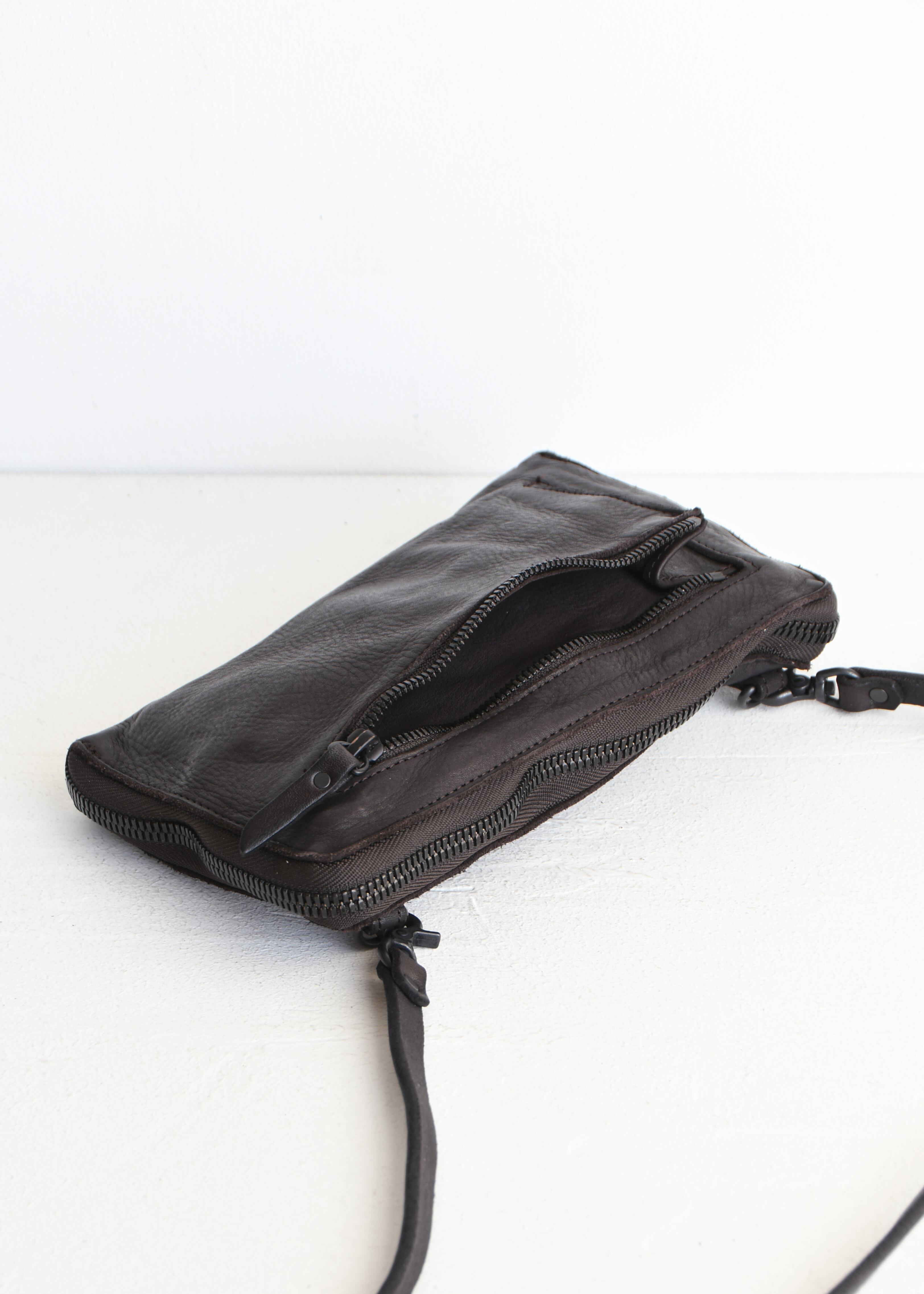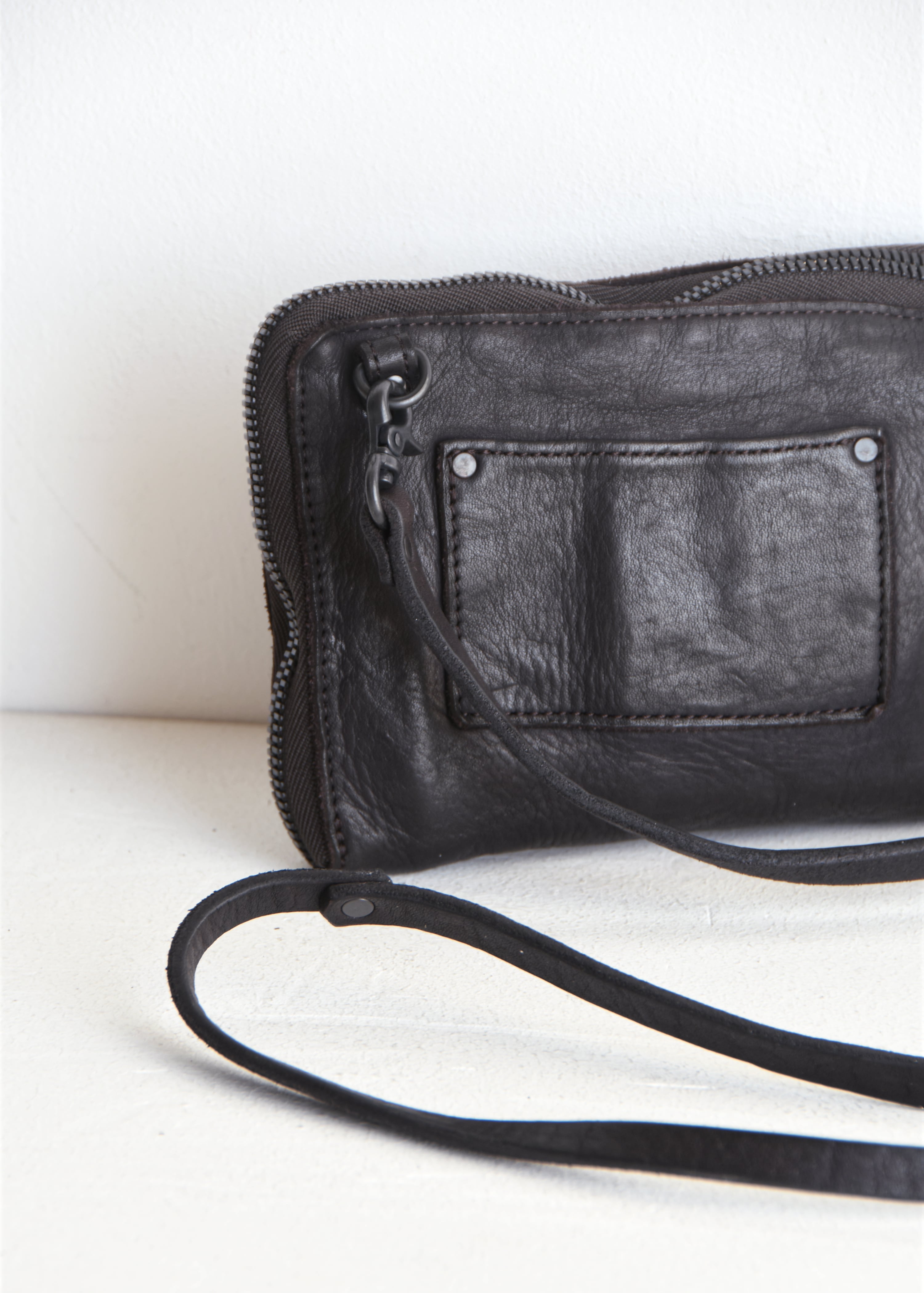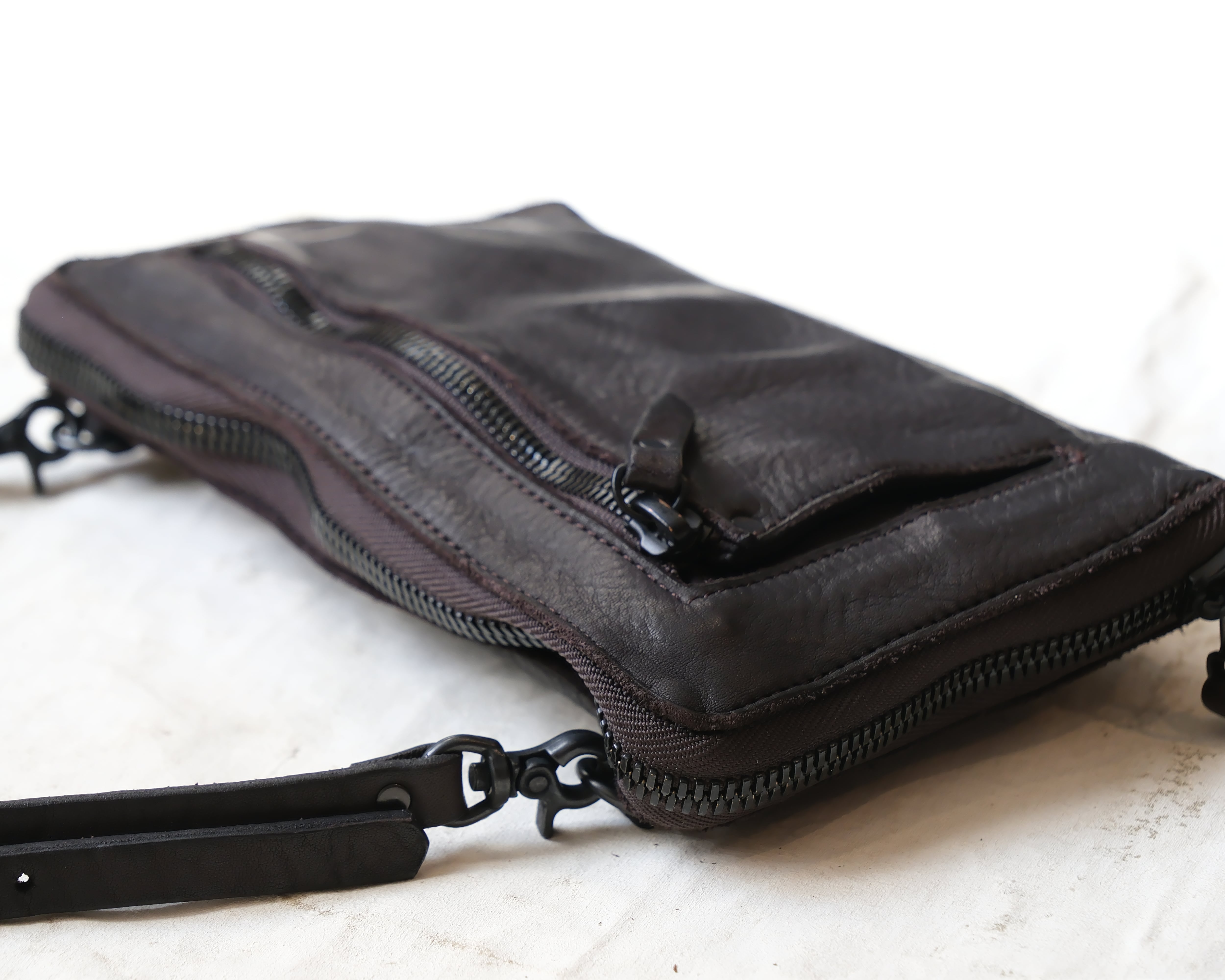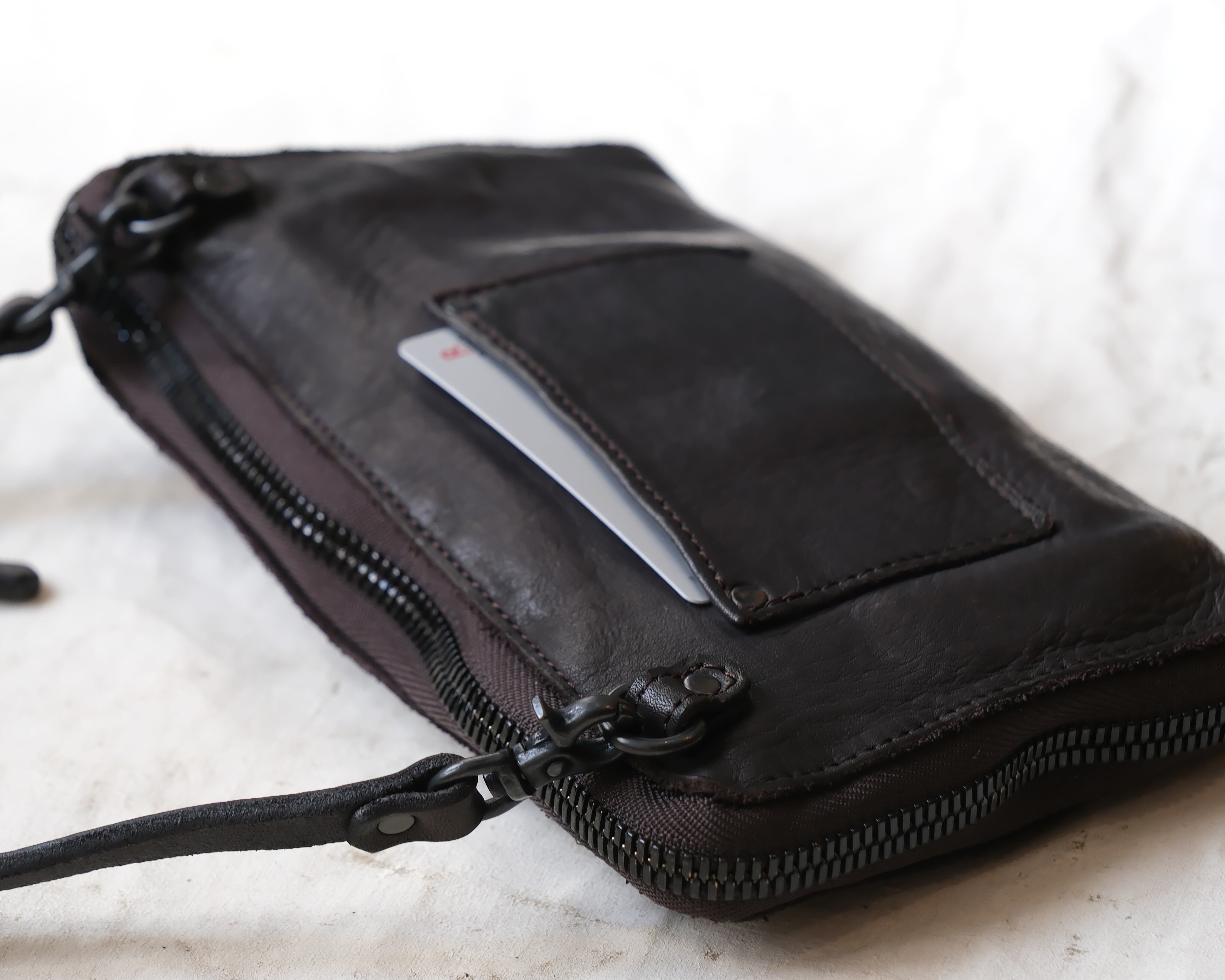 植物タンニンで丁寧に鞣した牛革を使用し、オーバーダイを施したサイフ型クラッチバッグ、DANBO。