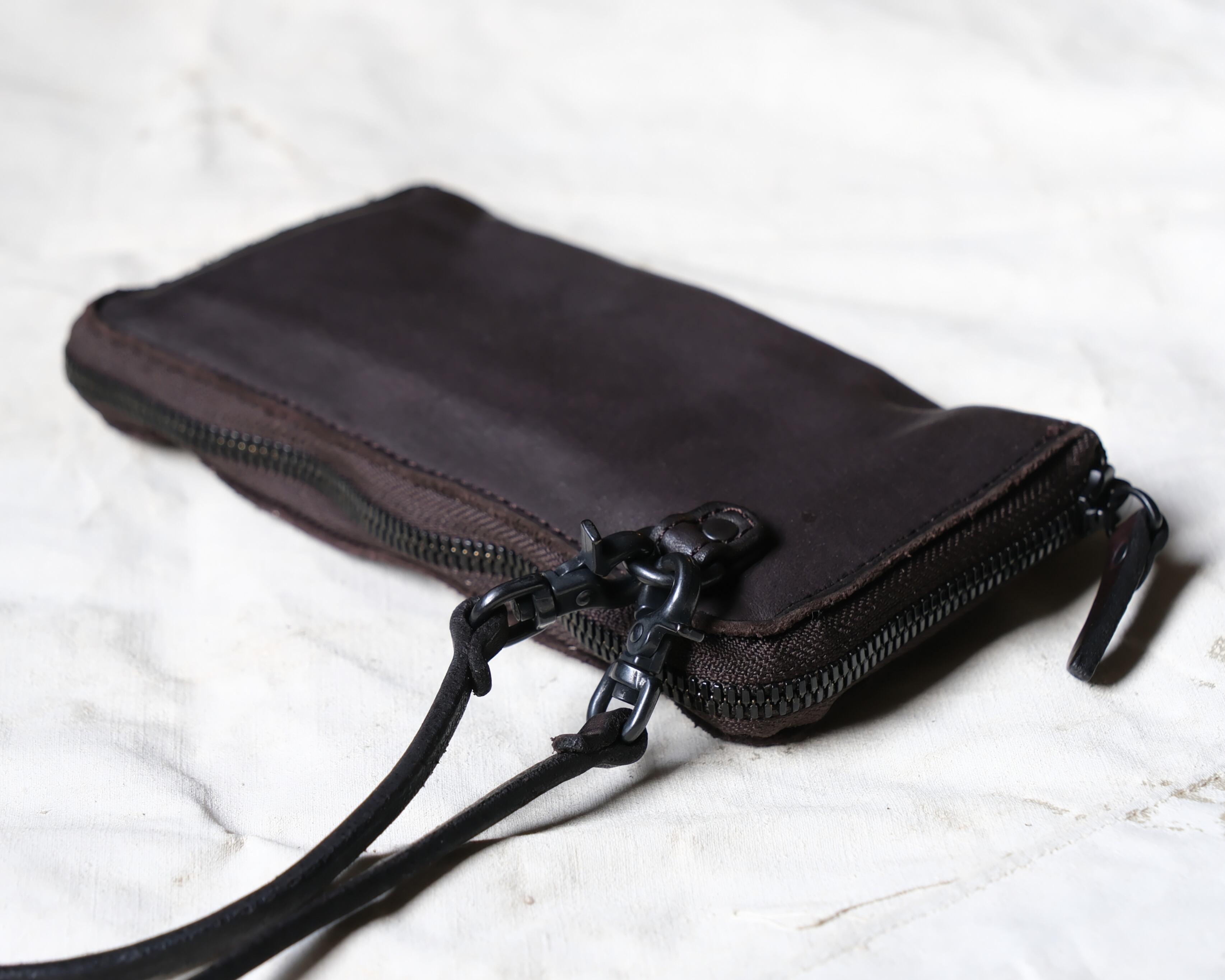 〇万が一、濡れてしまった場合は、乾いた布でお拭き取りになり風通しの良い場所で陰干してからご使用、保管して下さい。また、植物タンニン鞣しの革は、太陽の光や照明等に当たると焼けて色が変化していきます。それがこの革の良い点ではありますが、1部分だけが変色したりする事を避けるためにも、保管の際はご配慮下さい。