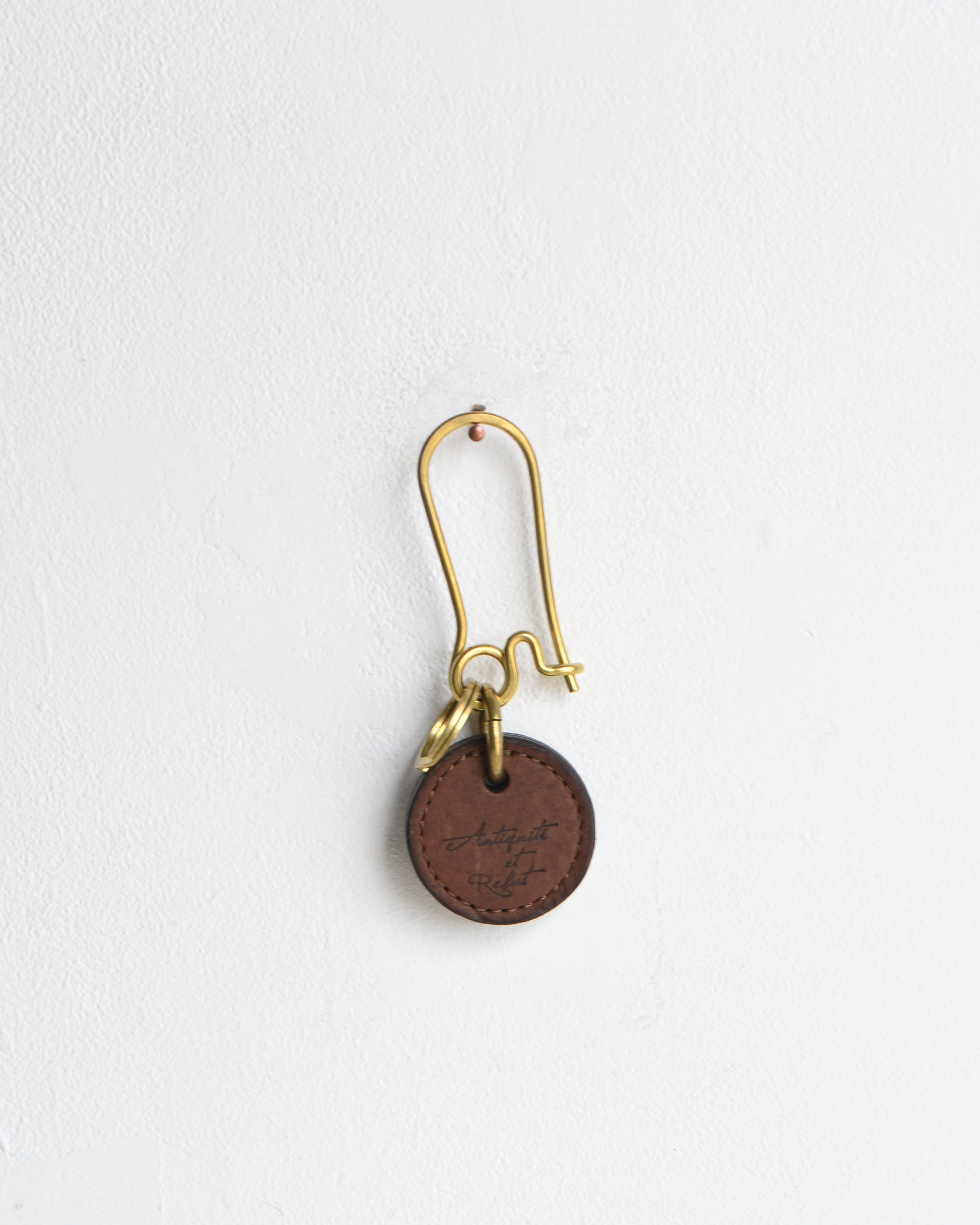 真ん丸の木を積み重ねた様な風貌がユニークで存在感のあるキーホルダー。革と共に真鍮金具も変化していきますので、ご自分だけの経年変化をお楽しみ下さい。