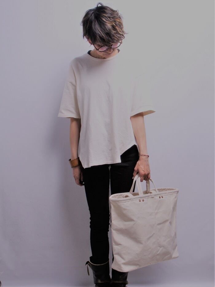 縦横は帆布パラフィンシリーズの中で一番大きいですが、マチを薄めに仕上げているので書類等を入れやすい形です。