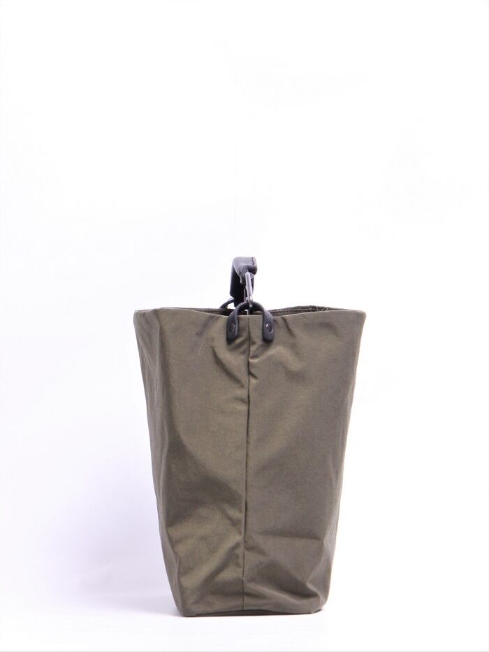 本体に、タスラン加工糸を使用して織ったナイロン生地に塩縮加工を施したシュリンクナイロン、ショルダーや持ち手には3.5mm厚の植物タンニンなめし牛ヌメ革を使用。