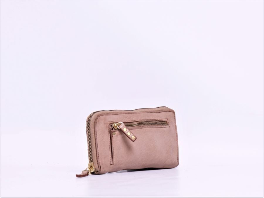 ラウンドファスナーがデザインポイントのこの財布は、中身が3つに仕切られており、各仕切りに2ケ、2ケ、4ケ、外側背面に1ケ、計9ケのカードポケットがあります。表面のファスナーポケットにはマチがあるのでコイン等を、各仕切りにはお札やレシート等を入れる事が出来ます。