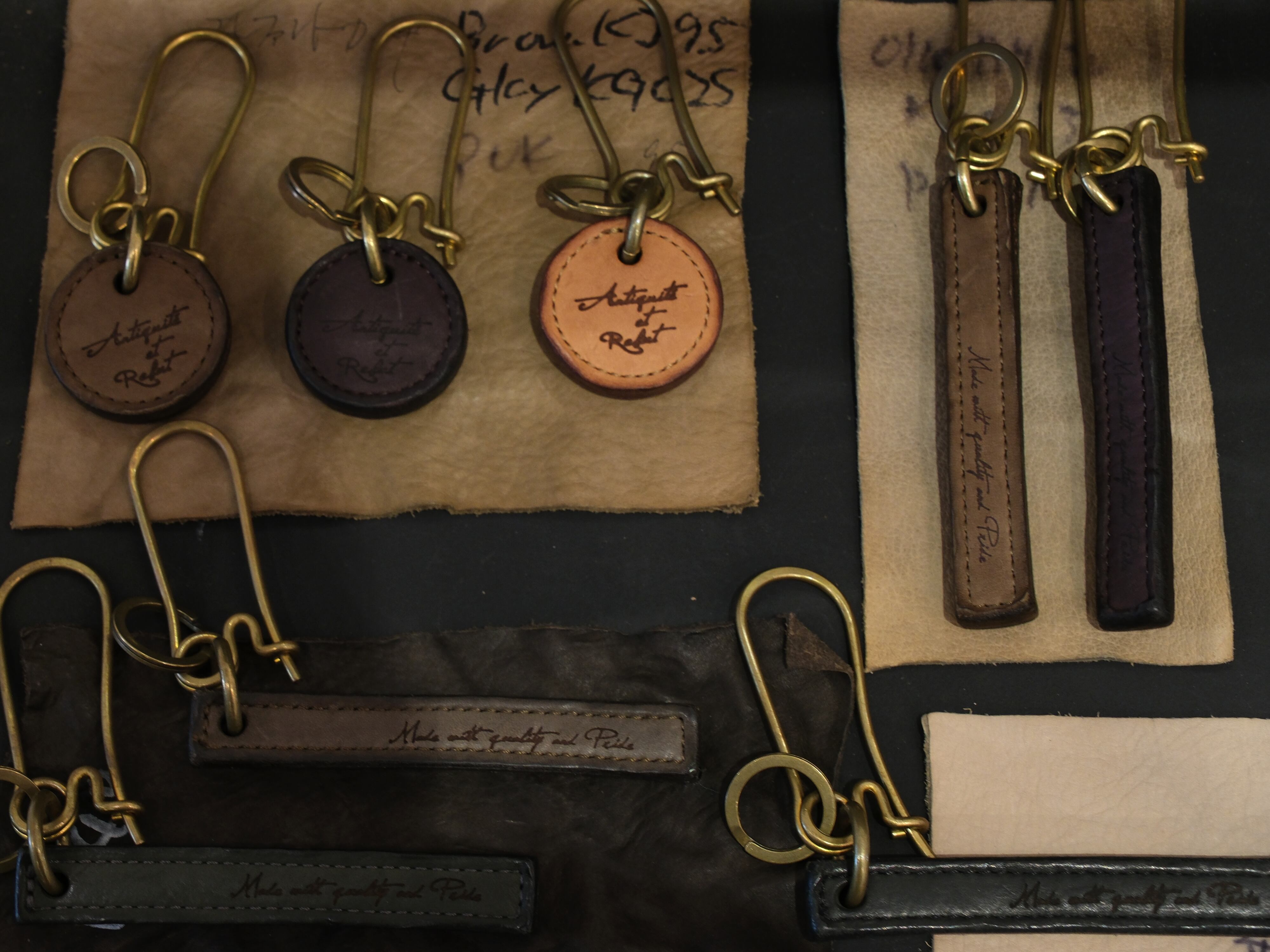 植物タンニンでなめした、3.5mmもの厚さのある牛革を3枚積み上げて作ったキーホルダー、TIKKU。