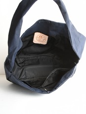内部には二つに仕切られたポケット、口元には真鍮製の留め具があり、とても機能的。