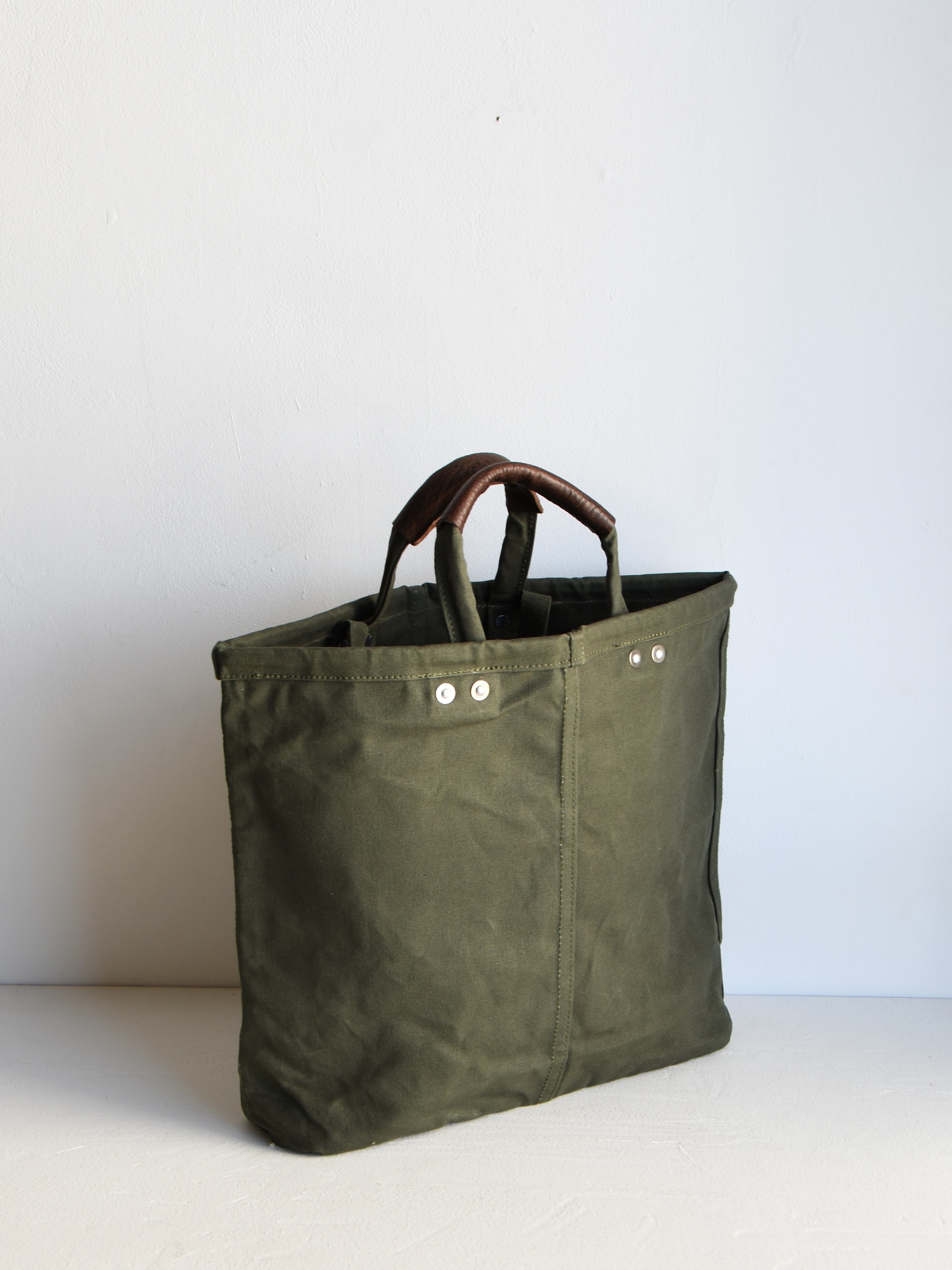 ですが、多少の汚れを気にせずガシガシ使い変化していくのもパラフィン帆布の魅力でもありますので、使い込んでいく内の汚れやくったり感等もエイジングのひとつとしてお楽しみ頂ければと思います。
